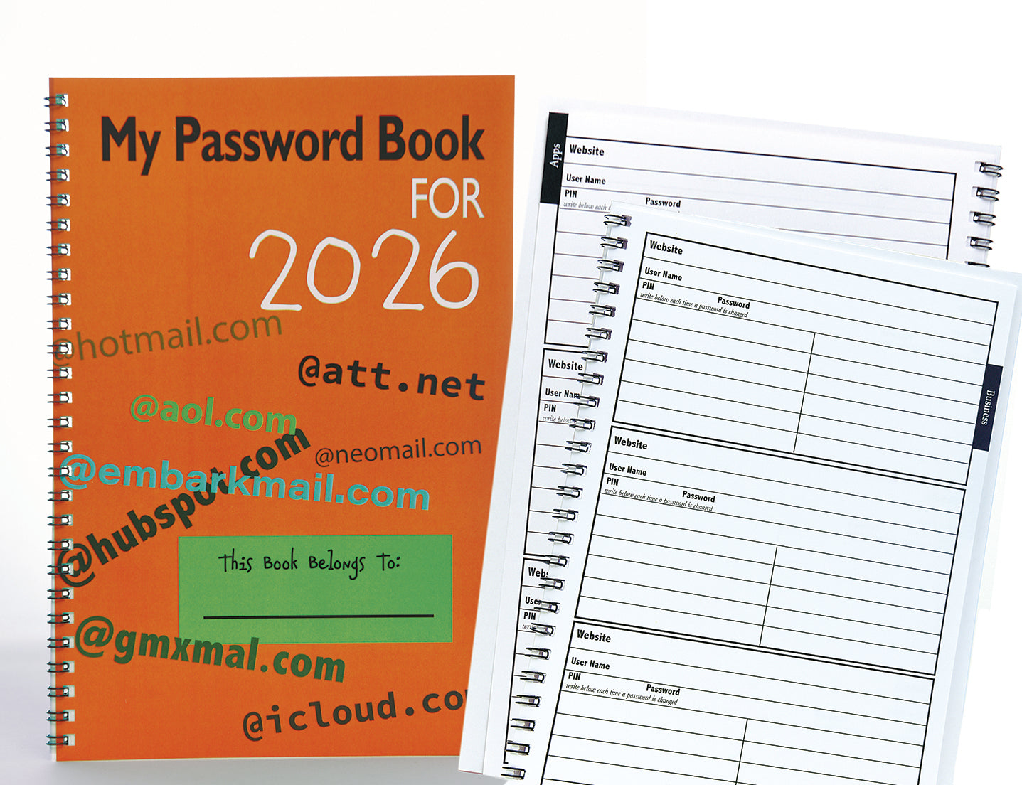 My Password book provides a convenient paper book to keep track of your ever changing passwords.